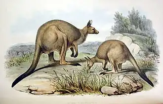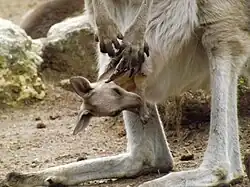 - ↑ JIRIK, Kate. LibGuides: Western Gray Kangaroo (Macropus fuliginosus) Fact Sheet: Reproduction & Development. ielc.libguides.com [online]. San Diego Zoo Wildlife Alliance Library [cit. 2023-08-09]. Dostupné online. (anglicky)