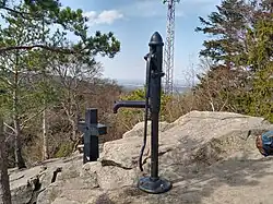 Na vrcholu se tyčí mohutná granulitová skála, z níž se otevírají výhledy směrem na západ a jihozápad. Na skále je malý železný kříž a od roku 2020 i nefunkční pumpa.[zdroj?] Severně od vrcholu stojí vysílač.[3]