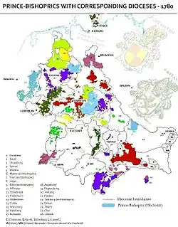 Před svým zánikem, kolem roku 1795, měla Svatá říše římská (často nazývaná s přídavkem „národa německého“) tato knížecí biskupství: