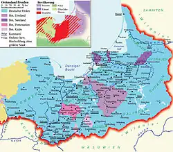 - ↑ Poku jde o pruská biskupství, pak biskup pomezaňský držel jen 1/6 své diecéze, biskup sambijský pouhou ⅛ a nejbohatší biskup varmijský zhruba ¼. Uvedené državy pod biskupskou vládou se navíc ještě dělily krátily vždy asi o ⅓, kterou spravovala biskupská kapitula. Viz FUKALA, Velká válka s křižáky..., s. 116