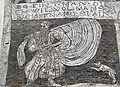 "DO.FINT.MAN.DIE / IEDER.SICH.WIE.WOL.MANS.(VER)N / EINT.NAMO.SI.AIN / IEDER SICH.WOL.KENT."[18][6]ve volném překladu do češtiny: "Ten, který zde nalezne, co je mu blízké, jakkoliv to popírá. Ať si ten to vezme k srdci, který se zde poznává."[18]
