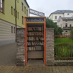 - ↑ KnihoBudka | Měníme vyřazené telefonní budky na veřejné knihovny [online]. [cit. 2020-09-18]. Dostupné online.