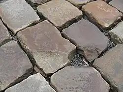 Před vyráběním křemenných kvádrů se pro dláždění používaly říční valouny nebo různé balvany (lomové či přírodní). Takto nepravidelně vydlážděný povrch se nazývá "divoká dlažba" a často byl později překryt dalšími vrstvami – např. říčním pískem, na který se pak položily novější dlažební kameny nebo kostky.[2]