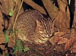 - ↑ a b c ADHIKARI, Dipendra; JOSHI, Pradeep; POUDYAL, Laxman. Road-kill record of a rusty- spotted cat in Shuklaphanta National Park, Nepal. Cat News. Spring 2019, čís. 69, s. 29–30. Dostupné online [cit. 2020-02-01].