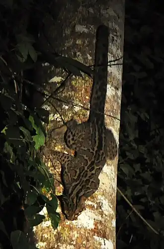 - ↑ a b c Ross, J., Brodie, J., Cheyne, S., Datta, A., Hearn, A., Loken, B., Lynam, A., McCarthy, J., Phan, C., Rasphone, A., Singh, P. & Wilting, A. Pardofelis marmorata. IUCN Red List of Threatened Species. 2016. Dostupné online [cit. 2017-08-09]. doi:10.2305/iucn.uk.2016-1.rlts.t16218a97164299.en.