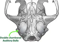 Klíčovým morfologickým znakem, kterým se kočkotvární odlišují od psotvárných, je anatomie bubínkové výdutě, kryjící střední a vnitřní ucho. Ta je v případě psotvárných tvořena pouze jedinou kostí, zatímco v případě kočkotvárných bubínková výduť vzniká srůstem dvou kostí, mezi nimiž se vytváří přepážka (septum), výduť tedy bývá dvoukomorová.[3] Problém v tomto případě nastává s klasifikací vyhynulé čeledi Nimravidae, u které byla výduť buďto chrupavčitá, anebo postrádala pravé septum pozorované u ostatních kočkotvárných.[7] Nimravidé bývají klasifikováni jako bazální kočkotvární, někdy jako kmenoví psotvární, případně i jako kmenoví zástupci šelem.[8]