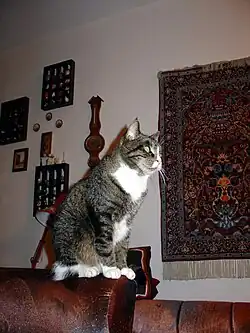- ↑ ŘÍHOVÁ, Marie. Chováme kočky. [s.l.]: DONA, 1999. ISBN 80-86136-30-2. Kapitola Stručná anatomie a fyziologie kočky, s. 54.