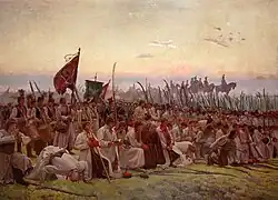 ![]() Tadeusz Kościuszko skládá 24. března 1794 přísahu na Hlavním krakovském náměstí | |||