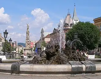 ![]() ![]() ![]() ![]() ![]() ![]() Nahoře: Katedrála svaté Alžběty a Kostel sv. Michala Střed: panorama z letadla Dole (zleva doprava): Národní divadlo; Centrum Hlavní ulice; Plastika znaku města | |