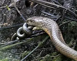 - ↑ a b c d e f g Bhaisare, Dhiraj & Ramanuj, V.P. & Shankar, Pogiri & Shankar, M. & Goode, Matt & Whitaker, Romulus. (2010). Observations on a wild King Cobra (Ophiophagus hannah), with emphasis on foraging and diet. IRCF Reptiles and Amphibians Conservation and Natural History. 17. S. 95–102. Dostupné online [cit. 2021-07-05]. (anglicky)