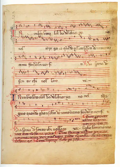 Třicet skladeb v kodexu tvoří madrigaly včetně jednoho madrigalu ve formě kánonu, jedna caccia, jedno rondello a 5 ballat. Všechny ballaty jsou jednohlasé. Jsou známi pouze dva skladatelé: Maestro Piero a Giovanni da Cascia (Giovanni da Firenze).