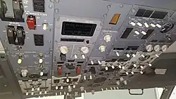 Vrchní panel obsahuje nejdůležitější ovládací prvky systémů letadla, například navigačních přístrojů, vzduchových, elektrických a palivových systémů.