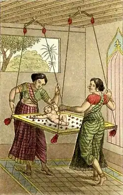 Kolébka je také jedním z úvazů miminka v šátku při nošení dětí.
