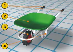 Při přepravě materiálu na ne zcela zaplněném kolečku je vhodné jej vrstvit co nejblíže k ose kola, aby se zmenšila síla nutná k pozvednutí držadel.