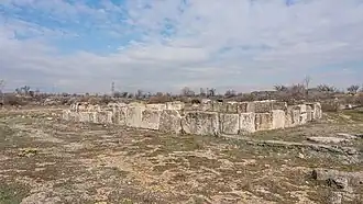 Keramické nálezy v okolí divadla potvrzují rané osídlení města ve třetím a druhém tisíciletí před naším letopočtem. Severovýchodně od tellu a pravděpodobně vně městských hradeb se na nekropoli nacházejí helénistické hrobky se dvěma hlavními styly pohřbívání: s předsíní spojenou s vnitřní komorou a tumuliemi neboli podzemními komorami, do nichž vedou schody. Mimo tell se nacházejí také pozůstatky částí sloupů, které mohly označovat procesní cestu neboli cardo.