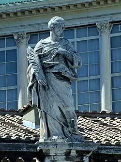 | Atributy | koruna na hlavě, palmová ratolest |