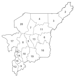 Od 1. ledna 2018 se Komijská republika člení na 6 městských okruhů a 14 rajónů. Ne všechny subjekty zřejmě užívají vlastní vlajku.