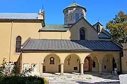 Klášterní (severní) nádvoří se nachází mezi severní zdi katedrály a budovou kláštera arménských benediktinek, který byl postaven v roce 1682. Před klášterem byla v roce 1881 umístěna socha Tomáše Dykase. Galerie, která vychází z italských lodžií, slouží pro přechod z kláštera do katedrály. Její dolní část je otevřená, klenutá, horní je uzavřená. Do zdi jsou zabudovány dvě reliéfy z místního vápence (16. - začátek 17. století).