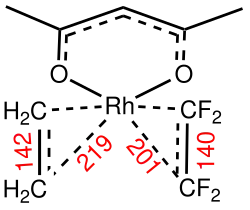 - ↑ a b J. A. Evans; D. R. Russell. The Crystal Structures of Ethylene and Tetrafluoroethylene Complexes of Rhodium(I). Journal of the Chemical Society D: Chemical Communications. 1971, s. 197. doi:10.1039/C29710000197.