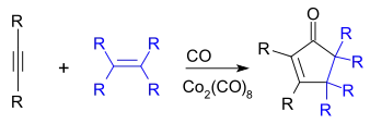 - Co2(CO)8 + R2C2 → Co2(C2R2)(CO)6 + 2 CO
