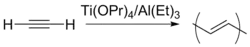 - Cp2TiCl2 + Mg + Me3SiC≡CSiMe3 → Cp2Ti[(CSiMe3)2] + MgCl2