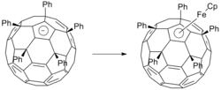 Pentafenylový anion C60Ph5− má podobné vlastnosti jako cyklopentadienylový ligand.[5]