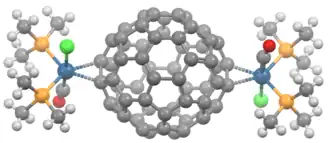 - ↑ Alan L. Balch; Joong W. Lee; Bruce C. Noll; Marilyn M. Olmstead. Multiple Additions of Vaska-Type Iridium Complexes to C60. Preferential Crystallization of the "Para" Double Addition Products: C60{Ir(CO)Cl(PMe3)2}2.2C6H6 and C60{Ir(CO)Cl(PEt3)2}2.C6H6. Inorganic Chemistry. 1994, s. 5238–5243. doi:10.1021/ic00101a015.