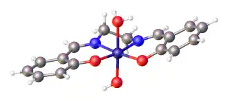 - ↑ P. Coggon; A. T. McPhail; F. E. Mabbs; A. Richards; A. S. Thornley. Preparation, Magnetic, and Electronic Spectral Properties of Some Chromium(III)–NN′-Ethylenebis(salicylideneiminato) Complexes: Crystal and Molecular Structure of N,N′-Ethylenebis(salicylideneiminato)diaquochromium(III) Chloride. Journal of the Chemical Society A. 1970, s. 3296–3303.
