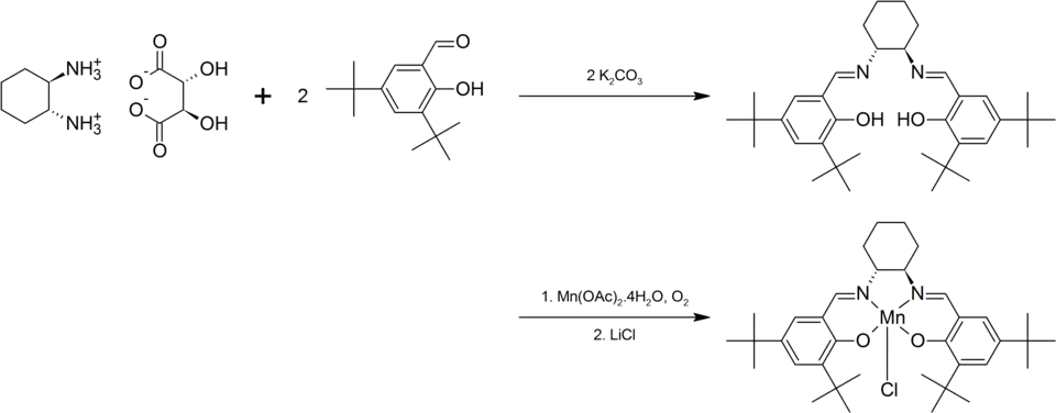 - ↑ a b LARROW, J. F.; JACOBSEN, E. N. (R,R)-N,N'-Bis(3,5-Di-tert-Butylsalicylidene)-1,2-Cyclohexanediamino Manganese(III) Chloride, A Highly Enantioselective Epoxidation Catalyst. Org. Synth.. 2004. Dostupné online.; Coll. Vol.. S. 96.