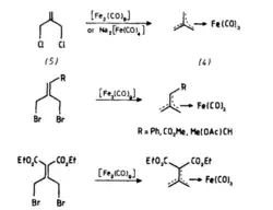 Podobnými způsoby byla připravena řada dalších komplexů železa se substituovanými trimethylenmethany.[3][4][5]