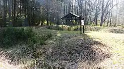 ![]() Umělý pahorek motte v místě bývalé vsi | |