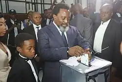 Všeobecné a prezidentské volby proběhly po opakovaných odkladech dne 30. prosince 2018. Prezident Kabila se nakonec vzdal zvažované třetí (již neústavní) kandidatury.[26] Vládní koalice proto do voleb vyslala předsedu své parlamentní skupiny Emmanuela Shadaryho, pokládaného za nástroj k pokračování Kabilovy moci. Dvěma hlavním opozičním kandidátům bylo zabráněno se voleb zúčastnit na základě jejich odsouzení v minulosti.