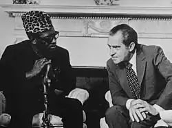 Prostřednictvím rozhlasu oznámil Kasavubu 5. září 1960, že s příslibem americké podpory odvolal jednostranně Lumumbu a přitom použil jako záminku masakry v jižním Kasai.[58] Obě komory parlamentu však Lumumbu podpořily a odsoudily Kasavubuovu akci.[58] Lumumba se pokusil Kasavuba z jeho funkce odstranit, ale nezískal podporu, což vyvolalo ústavní krizi.[58] Aby se zjevně patová situace vyřešila, provedl Joseph-Désiré Mobutu nenásilný převrat a nahradil jak Kasavuba, tak i Lumumbu kolegiem generálních komisařů (Collège des Commissaires-généraux) složeným z absolventů vysokých škol, vedeným Justinem Bombokem.[59] Sovětští vojenští poradci dostali rozkaz odejít.[60] Převrat byl zamýšlen jako prostředek, aby si politici vzali oddech, než budou moci znovu začít vládnout. Ve skutečnosti se však Mobutu postavil s Kasavubuem proti Lumumbovi, který byl v domácím vězení, hlídaný ghanskými jednotkami OSN v obklíčení vojáky ANC.[61] Kasavubu byl Mobutuem v únoru 1961 znovu jmenován prezidentem. Od tohoto puče byl Mobutu schopen uplatňovat v zákulisí konžské politiky značnou moc.[60][62]