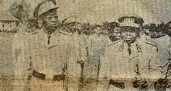 Generálporučík Émile Janssens, belgický velitel Force Publique, odmítl přijmout konžskou nezávislost jako změnu velení.[35] Den po oslavách nezávislosti shromáždil černé poddůstojníky své posádky v Léopoldville a řekl jim, že věci pod jeho velením zůstanou stejné, což shrnul na tabuli textem „před nezávislostí = po nezávislosti“. Tato zpráva byla v rozporu s představami většiny domorodého poddůstojnictva a mužstva, která očekávala, že nezávislost bude doprovázena rychlým povyšováním a zvýšením platů.[35] 5. července 1960 se proti svým bílým důstojníkům vzbouřilo několik jednotek na základně Hardy nedaleko Thysville. Povstání se příští den rozšířilo do Léopoldville a později do posádek po celé zemi.[36] Lumumba Jansense propustil a přejmenoval Force Publique na Armée Nationale Congolaise (ANC). Velitelem armády místo něj jmenoval Victora Lundulu, kterého povýšil z nadpraporčíka na generálmajora.[36] Současně byl Lundulovým zástupcem a náčelníkem štábu jmenován Joseph-Désiré Mobutu, bývalý nadpraporčík a blízký pomocník Lumumby.[37]