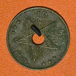 V roce 1887 byly zavedeny děrované měděné mince v hodnotách 1, 2, 5 a 10 centimů společně se stříbrnými mincemi v hodnotě 50 centimů a 1, 2 a 5 franků. Mince přestaly být raženy ve stříbře v roce 1896. V roce 1906 byly zavedeny děrované , mědiniklové 5, 10 a 20centimové mince, zbývající měděné mince (v hodnotě 1 a 2 centimů) se razily až do roku 1919. Mědiniklové 50centimy a jednofranky byly zavedeny v roce 1921, resp. 1920.