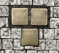 Tento „Kámen zmizelých“ odkazuje na Dr. Felixe Porgese, který v Terezíně organizoval kabaret „Smějte se s námi“.