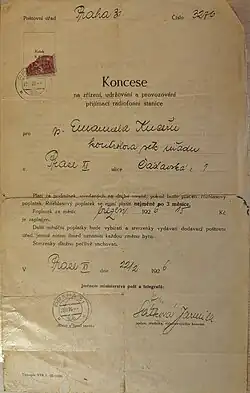 Nejstarší známé dochované radiofonní koncesní listiny pochází z roku 1926.[11] Sbírku starých rozhlasových koncesí vlastní brněnský novinář Miloš Šenkýř.