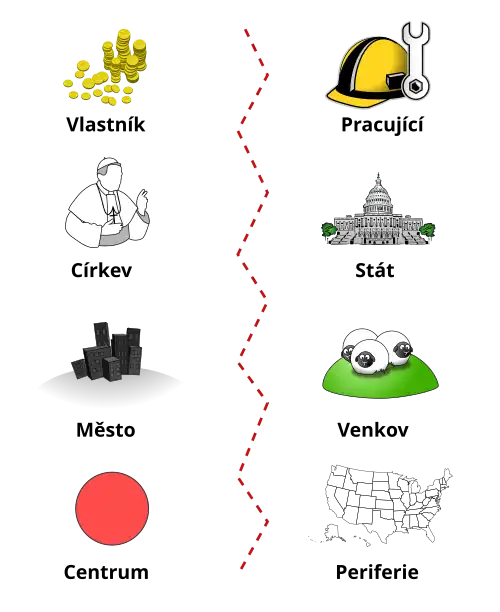 | Průmyslová revoluce | město-venkov | vlastníci-pracující |