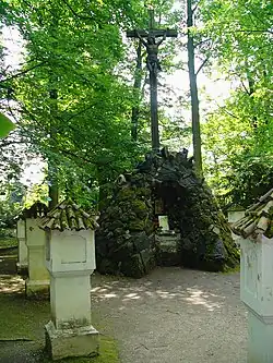 V areálu parku je místní zajímavostí tzv. Svatojiřské muzeum, obsahující četná umělecká díla s námětem sv. Jiří. Rozlehlý krajinářský park o výměře více než 225 hektarů doplňuje růžová zahrada. Její součástí je i památná Křížová cesta, kterou roku 1775 dala postavit hraběnka O´Kellyová po vzpouře sedláků. Křížová cesta se nachází u hlavní zámecké cesty a tvoří ji čtrnáct kamenných hranolů s vrcholovou kaplí se stříškou, postavených do kruhu kolem kamenné Lurdské jeskyně s Ukřižovaným Kristem.[10] Kříž a jeskyně stojí na místě původní Kalvárie, která se nedochovala. Nechal je sem doplnit František Ferdinand na připomínku své návštěvy v Lurdech roku 1905.[11]