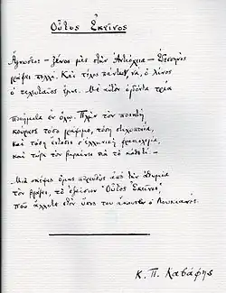 V tomto článku byl použit překlad textu z článku Constantine P. Cavafy na anglické Wikipedii.