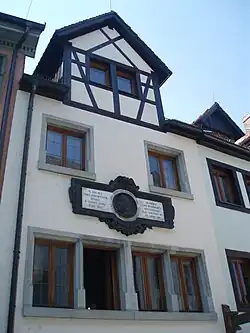 Takzvaný Husův dům se nachází nedaleko Římské brány v Hussenstrasse 64. Podle místní tradice zde Jan Hus se svým doprovodem měl být ubytován od 3. do 28. listopadu 1414 u vdovy Fidy Pfisterin.[4] V 16. století byla na domovní fasádu umístěn obraz s posměšným čtyřverším, sejmutý až ve 20. století. V roce 1785 byla na průčelí osazena menší Husova kamenná busta. Roku 1878 směřovala do Kostnice již druhá národní pouť, jejímž výsledkem bylo osazení pamětní desky, která je na fasádě dodnes.[5][6]
