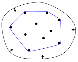 Konvexní obal množiny vektorů v rovině. Můžeme si představit, že okraj obalu je určený gumičkou nataženou kolem vektorů.