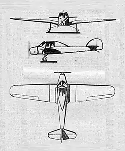 Křídlo bylo upevněno bez vnějších výztuh ke spodku trupu, jeho střední partie byla ostře lomena do V, což příznivě ovlivňovalo příčnou stabilitu letounu. Trup, křídlo i kormidla byly dřevěné s dýhovým potahem.[7]