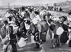 Váleční uprchlíci, v pozadí tank M46 Patton