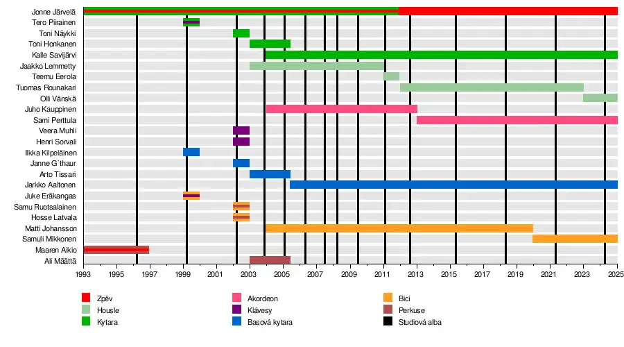 V éře Shaman se v kapele vystřídali Toni Näykki – kytary, Juha Takkunen – kytary, Janne G'thaur – baskytara, Nalle Österman – bicí, Hosse Latvala – bicí, Weera Muhli – klávesy, Tero Piirainen – kytary, klávesy, vokály, Ilkka Kilpeläinen – baskytara, vokály a Juke Eräkangas – bicí, klávesy, vokály.