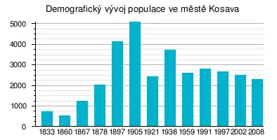 - 20. století: 1905 — 5 067 obyv.; 1921 — 2 433 obyv.; 1938 — 3 708 obyv.; 1959 — 2,6 tis. obyv.; 1991 — 2,8 tis. obyv.; 1997 — 2 675 obyv.