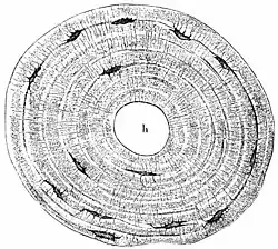 Osteon; h = Haversův kanálek