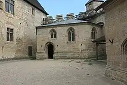 Součástí hradu bývala už ve čtrnáctém století kaple Panny Marie,[6] ale před rokem 1412 bylo její patrocinium rozšířeno o zasvěcení Janu Křtiteli. V roce 1424 už se staré zasvěcení Panně Marii nepoužívalo. Podle hypotézy Rudolfa Anděla se tak stalo po smrti Jana z Kunštátu v roce 1409. Malá kaple v okrouhlé věži neumožňovala umístění dalšího oltáře, a proto byla na nádvoří postavena kaple nová. Velkou fresku se znakem Zajíců z Hazmburka v ní nechal namalovat pravděpodobně Mikuláš Zajíc z Hazmburka. Po roce 1551 byla kaple zasvěcena svaté Anně, která byla patronkou Anny z Bibrštejna.[8]