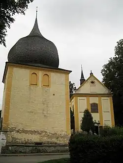 Západně od kostela se nachází zvonice s kostnicí, taktéž z konce 16. století. V roce 1998 prošel generální rekonstrukcí, v roce 1999 byla obměněna i cibulovitá báň krytá šindelem.
