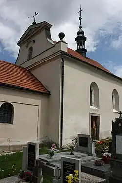 Gotický kostel, datovaný literaturou do druhé třetiny 14. století. V presbytáři zůstal gotický, v lodi byl barokně přestavěn počátkem 18. století.[2]